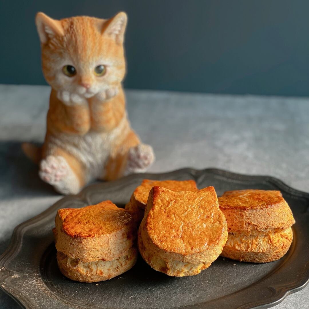 猫ちゃん型の発酵バターと全粒粉を使用したスコーン