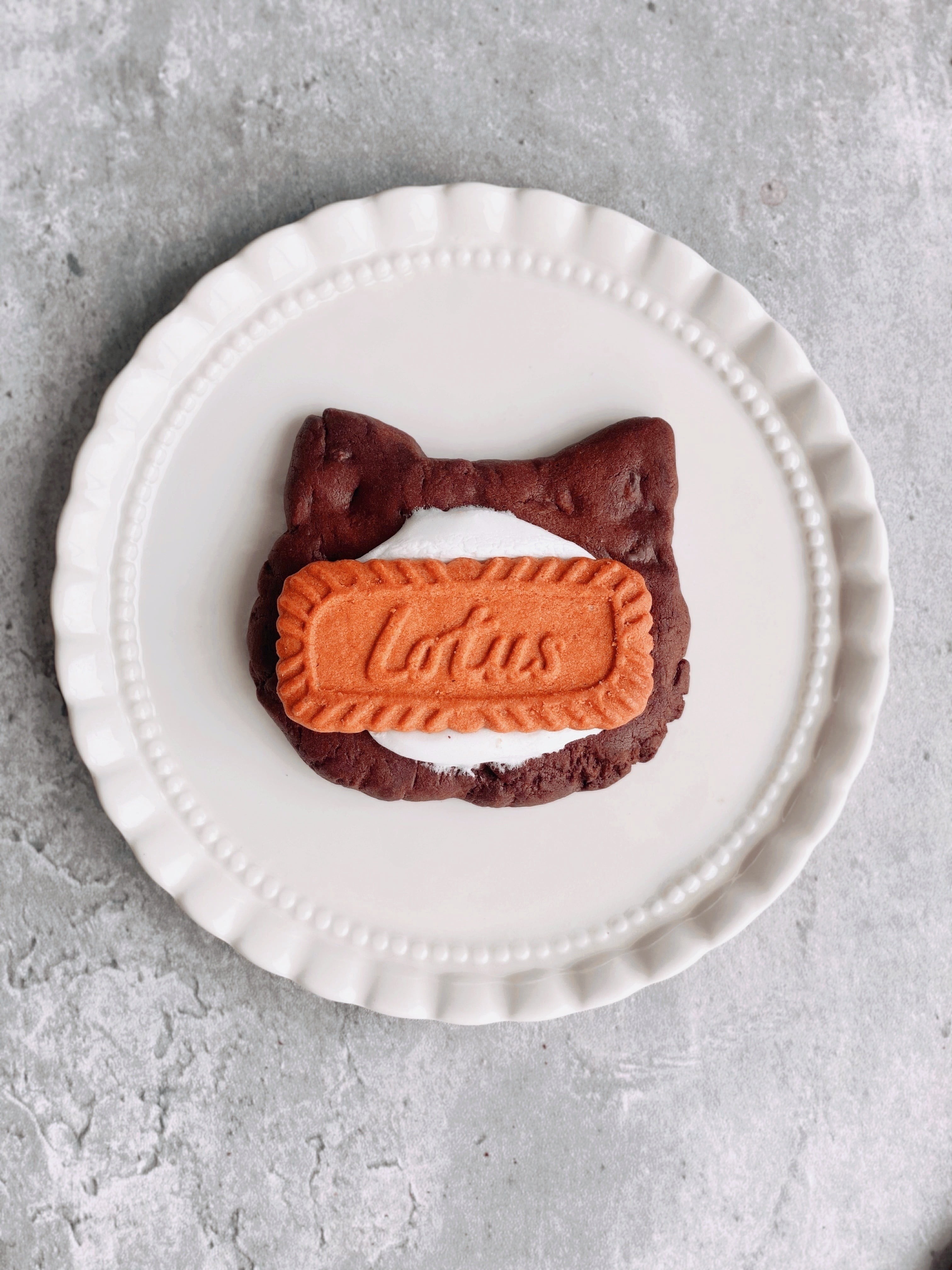 チョコチップ入りのココアクッキーに、マシュマロとロータスビスケットをトッピング